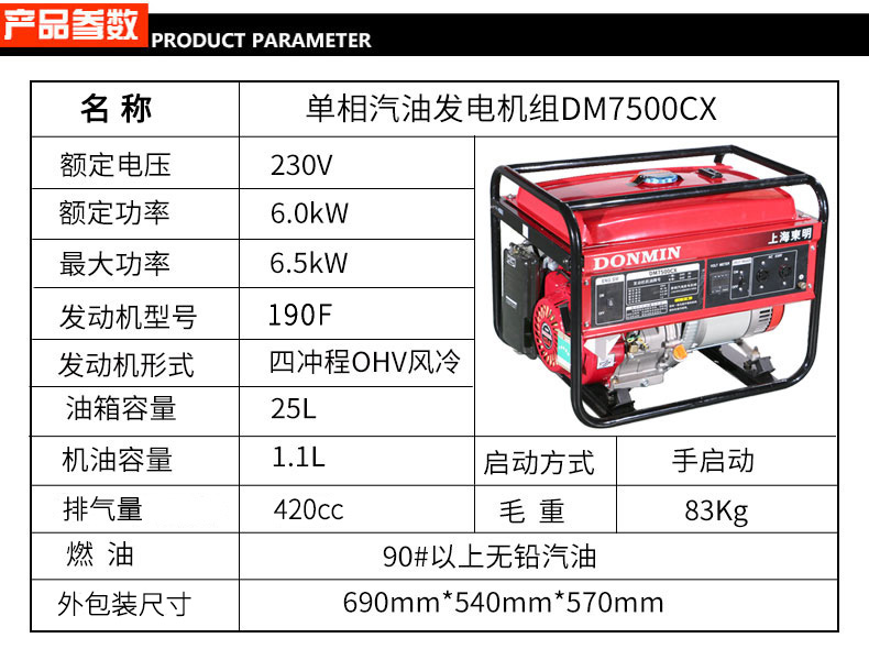 單缸汽油發(fā)電機 DM7500CX